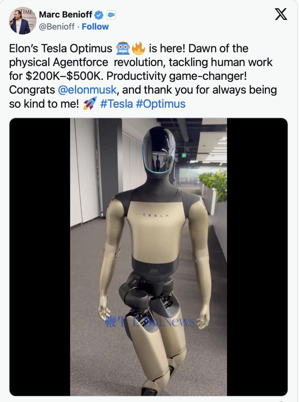 近期特斯拉在洛杉矶开了一个机器东说念主餐厅,使用了诸多Optimus机器东说念主当作做事员,旨在展示我方的机器东说念主业务技艺和改日愿景。但在最近Salesforce CEO贝尼奥夫(Marc Benioff)访谒特斯拉工场的视频中,Opitmus在与东说念主类换取时依然响应鲁钝,要插足具体使用还有很长的路要走。